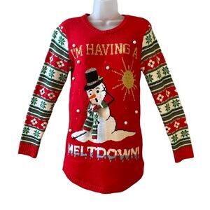 NOBO Light Up I'M HAVING A MELTDOWN Snowman Ugly Christmas Tunic Sweater Size M