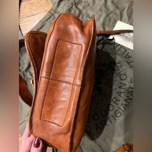 Campomaggi x Free People Salvatore Shearling Trim Leather Shoulder Bag in Cognac