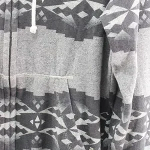 Marled/heather shades of gray with an Aztec/southwest design in shades of gray