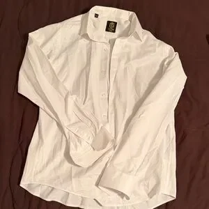 Classic white dress shirt perfect for any occasion. Comfortable and stylish, ideal for both formal and casual settings. Has a nice soft sheen.