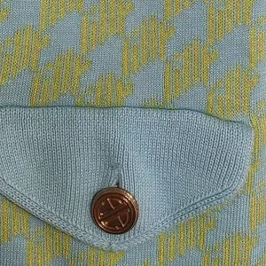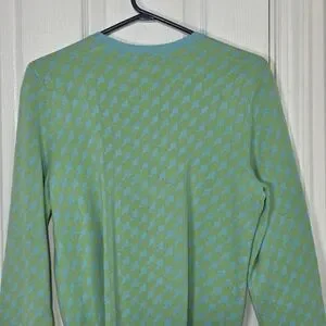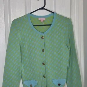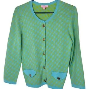 Lilly Pulitzer cotton knit gold logo button up cardigan Lime & Aqua pockets Med