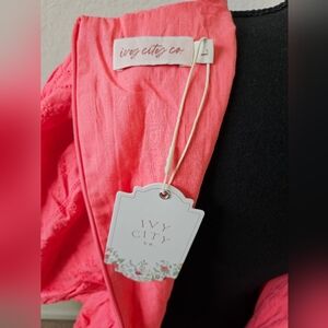 NWT Ivy City Co. Thea Corset Bustier Peplum Puff Sleeve Embroidered Top Coral L