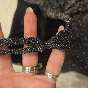 Dazzle in this chic and eye-catching dress! Features a shimmering glitter design. Perfect for a night out. Adjustable straps. Vcut. Fully lined. Perfect for any occasion. In great condition. Measures approximately 28" in length.