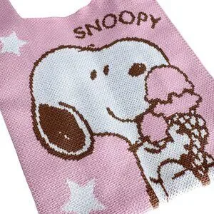 Peanuts Snoopy Loves Ice Cream Knitted Baggu Pink Mini Tote