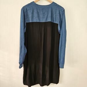 Ellos Denim Trim Tunic Top M 14/16 Plus Blue Black Shirt Long Sleeve