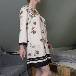 Mini Dress Floral Beige 3/4 Sleeves Scoop neck ZARA