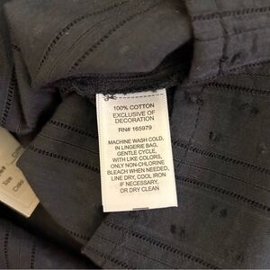 Cupio black ruffle smocked embroidered pullover blouse with square neckline and ties in back.