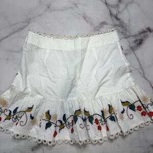 Farm Rio Pitanga Embroidery Mini Skirt Size XL Off White New Crochet Birds