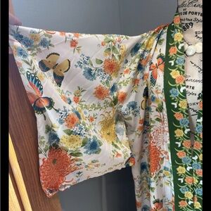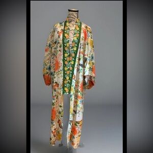 Colorful Kimono with a lively floral and butterfly design. Made in Japan.