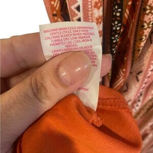 Chic dress with geometric design. Features pink and brown hues. Perfect for casual wear.
