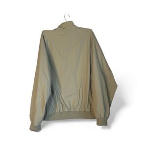 The Orvis Harrington Tartan Plaid Lined Jacket in Tan Khaki XL is a classic and versatile outerwear option for men. Made from a soft cotton blend shell, this bomber jacket features a stand-up collar, knit cuffs and waist, and a classic fit. There are 2 front flap pockets, and an inner zip pocket at the chest. The jacket is lined for added comfort and is ideal for various occasions, including travel, casual wear, workwear, and even a golf outing. The beige color and plaid lining pattern add a touch of classic style, making it a timeless piece for the summer, fall, and spring seasons. Easy to care for with machine washable fabric, this jacket is a must-have for any wardrobe. Measurements: chest: 54", waist: 44-50" (elastic knit), sleeve: 35" from collar center, length: 26.5" front, 29.5" back from top of collar