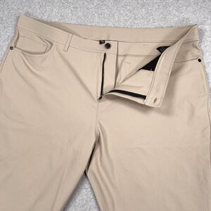 Men's Public Rec Dealmaker 5 Pocket Pant Beige Sand Performance Wind and Water Resistant Lightweight Stretch Comfort Athletic Athleisure Smart Casual Chinos Trousers Pants. Style 7202309832738. 100% polyester.