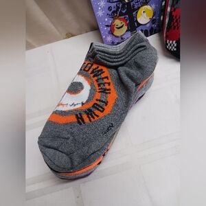 Nightmare before Christmas socks 4-10. 16 pair no-show ( 10 pack Halloween & 6 pack Christmas) & Pin Set glow in dark. All items NWT.