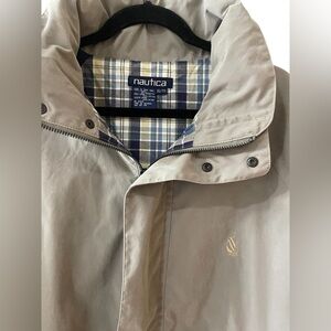 Nautica Green Khaki Long-sleeve Jacket | Men XL. In great condition with no signs of wear. Jacket has zip and snap buttons. Front pockets. Blue plaid print inside.
