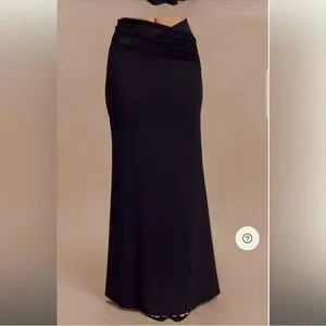 Featuring an asymmetrical waistline and mesh panel detail, this bodycon skirt offers a striking, modern silhouette. The maxi length provides an elegant, flowing effect, while the flared hem adds a touch of movement and flair