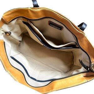 Gorgeous large bag. Camel and black. See pictures and video for flaws. Inside is in good condition. Very minor marks. Water mark Almost looks folded in on the bottom corner but that is what needs cleaned.