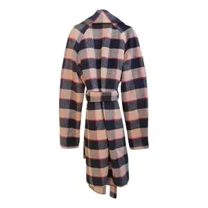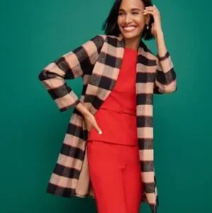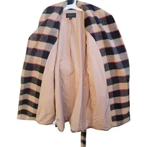 Ann Taylor Buffalo Plaid Wool Belted Shawl Collar Coat