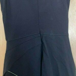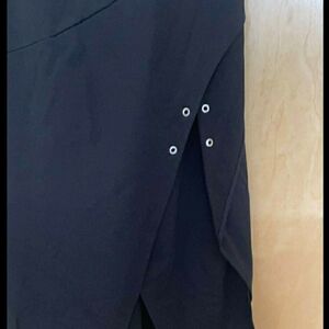 Elegant black midi dress. Asymmetrical hem. Sleek and stylish design.