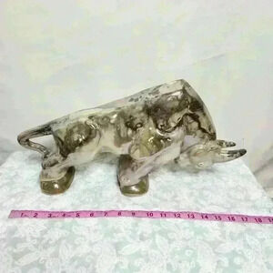 Charging Bull Porcelain statue marble finish. 18" long. See images for all measurements. In flawless condition! Will pack and ship with extreme care.
