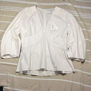 Brand new with tags NWT Derek Lam 10 Crosby Noe Puff-Sleeve Peplum Top in Optic White Size 12.