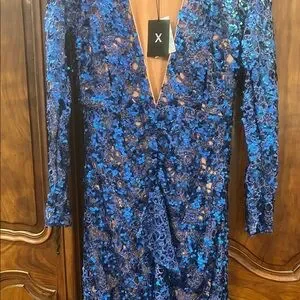 Dazzle in the long sleeve blue sequin gown - X by NBD Ice Melts Maxi. Perfect for special occasions, this dress features a stunning deep V-neck and a glamorous slit. Shine with confidence in this elegant piece.