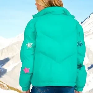 FANTASTIC FAWN Sequin star zip front puffer jacket S M L