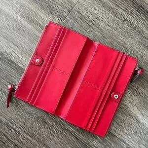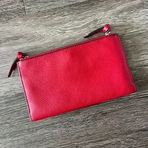 Elegant red wallet or clutch with sleek design. Perfect for adding a bold touch to any outfit.