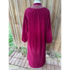 NO size labels, shown on a size 4-6 dress form. Please note measurements: Bust 40", shoulders 15", length neck to hem 52".