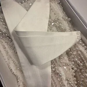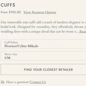 Removable arm cuffs, from Made With Love Bridal. Mikado fabric, very compatible with the Florence and Celine designs. Never worn, I completely forgot too wear them with my Celine dress on my wedding day.