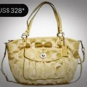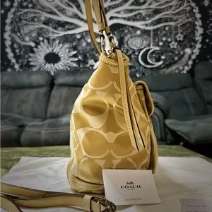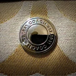 Vintage Y2K Coach Shoulder Bag beige color Shoulder Bag new without tags Coach shoulder bag. Buy this coach bag will give you brand new cherry keychain for free and brand new dusty bag for free too , Other people sale $328-$500, I sale low price deal brand new without tags Only $189, Inside clean, very good condition, is new without tags , is 2009 year closer year to vintage and is new without tags , medium -large size ,can put in a lot stuff, can put in small computer and iPad , and books , perfect for every day, work or school and the meeting and the shopping and the party , she is so gorgeous so beautiful , she is ready to go to your house , you can make offer , will give you a brand new dusty bag , Elegant Features a gold tone with signature pattern. Includes adjustable strap and turn-lock closure.