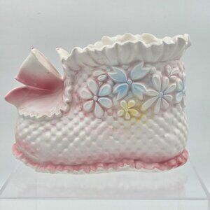 Napco C-7707 Baby Shoe Planter Ceramic Pink White Pastel 1950s Cottage Core