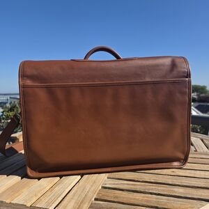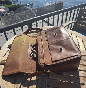 Features: Two gussetted pockets. Inside front & back compartments. I side ack zipper pocket. Center zipper compartment padded for computer accessories. Three diskette pockets. 44" adjustable strap with pad detaches. Original Coach leather tag.