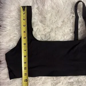 The Lululemon Wundermost Black Bralette in size 12 is a stylish and functional sports bra designed specifically for active women. With a comfortable normal strap design, this activewear piece is perfect for workouts and other physical activities. Please see photos for measurement. Pre-owned, good condition.