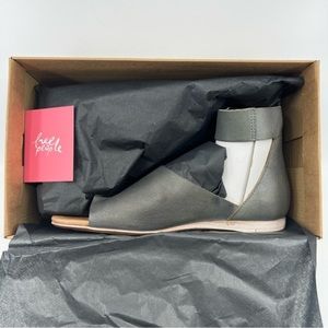 Stylish black leather sandals with brown sole. Features adjustable ankle straps. Perfect for casual wear. Wore once