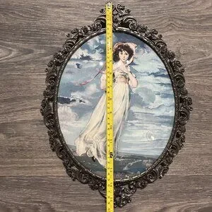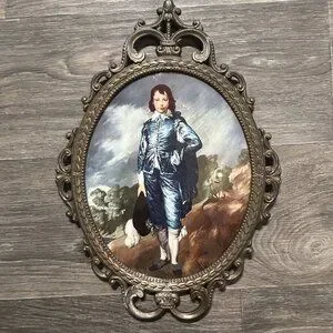 These vintage Pinkie and Blue Boy prints, crafted in Italy, are elegantly framed in ornate oval designs. With their classic charm and artistic value, they elevate the aesthetic of any room. The intricate frames provide a timeless appeal, making them a distinguished addition to traditional or eclectic interiors.