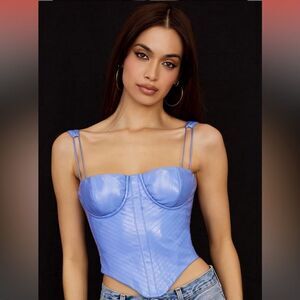 House Of Cb Melissa Vegan Leather Cornflower Blue Crop Top Corset Size XS