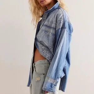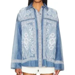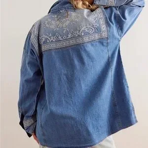 NWT FREE PEOPLE Lace Embroidered Denim Shirt size Medium