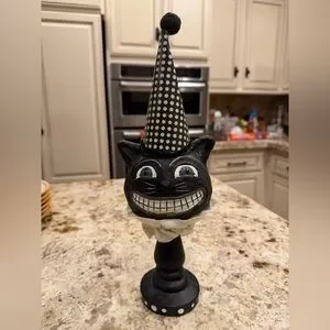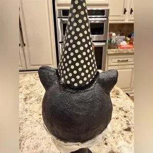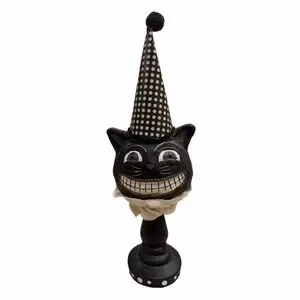 Charming Vintage Cheshire black cat with polka dot hat. Perfect for Halloween decor.