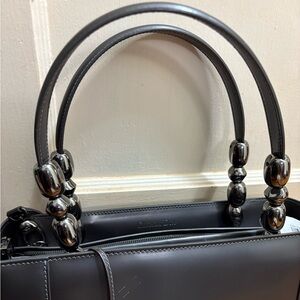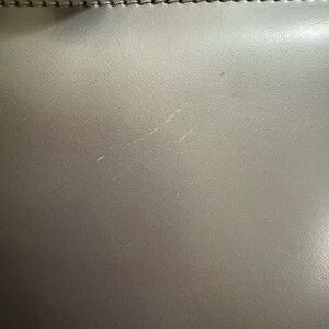 Excellent condition bag in gray color. Super cute handbag with longer strap included. Has a few scratches as shown in last photo. No stains or tears. Got it as a gift. Code is MA-0949