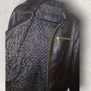 Dark brown genuine leather jacket. Size medium. In excellent condition, with one small area inside with some pilling, but the outside looks great. PTP 19" and 26" length. Brand is Winlit New York. Not super heavy, very comfortable and a perfect lightweight fall time jacket.