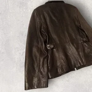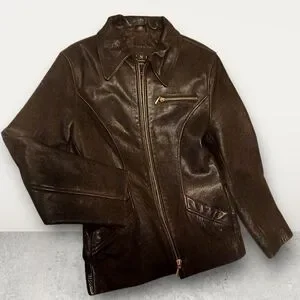 Winlit Dark Brown Women's Leather Jacket Size Medium With Gold Accents