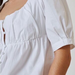 Anthropologie White Button-Up Blouse with Puff Sleeves