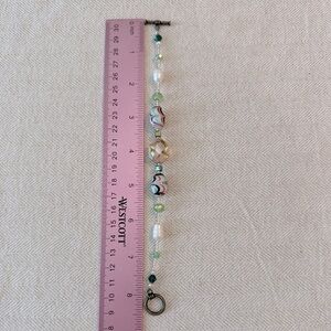 I've used toggle clasps to make it easier for getting the pieces on and off and the beads aside from the vintage lamp work (the swirly ones) are a combination of glass, crystal and genuine freshwater pearls.