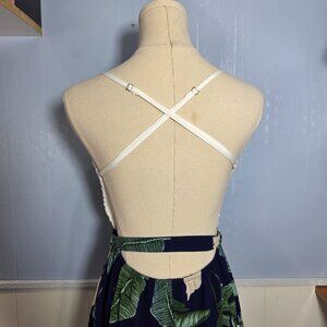 Blooming Jelly Medium White Navy Teal Open Back Crochet Faux Wrap Casual Dress