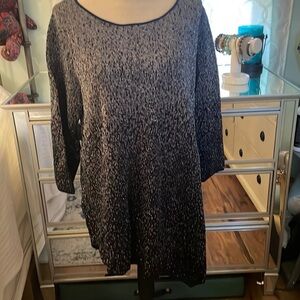 💝✨ Gorgeous XL Chelsea & Theodore graduated metallic silver thread and black tunic with rounded neckline, 3/4 sleeves and asymmetrical hem. This top has bling AND comfort. Soft stretch and lovely drape. Pair with black velvet leggings, boots or heels and you’re ready for New Year’s Eve without worrying about strapless bras, boob tape, or sitting/getting out of a car comfortably in a short cocktail dress! Pristine condition. Worn once. Smoke free home.
