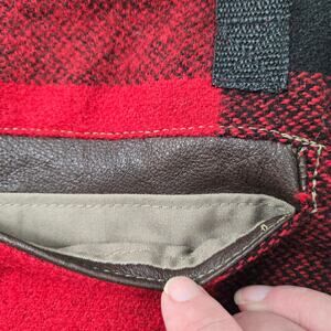 Handmade Buffalo Plaid Shoulder Bag Red Black Wool Feel Faux Leather Fall Winter