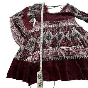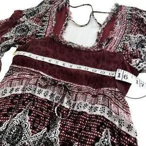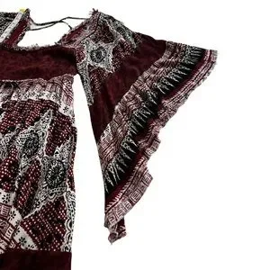 Free People Heart of Gold Brown Boho Peasant Dramatic Sleeve Short Dress Small