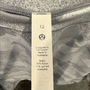 Lululemon camo top in gray. Comfortable and stylish.