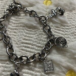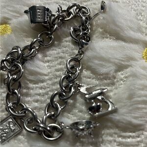 Elegant silver charm bracelet from Sur La Table featuring unique culinary-themed charms. Perfect for adding a touch of whimsy to any outfit. Includes a whisk, colander, mixer, ladle, chef’s hat and more.