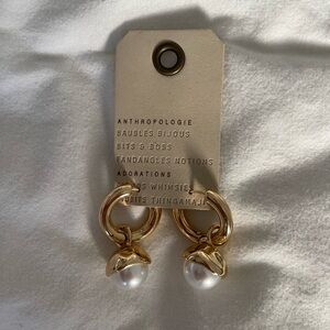 Anthropologie Gold Hoop Earrings with Pearls